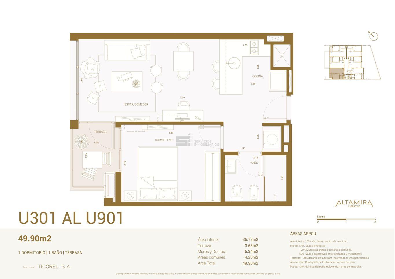 - MONO / desde Usd 140.944 / 34 m2 int + 3,4 m2 balcón (contrafrente) UNIDAD 804