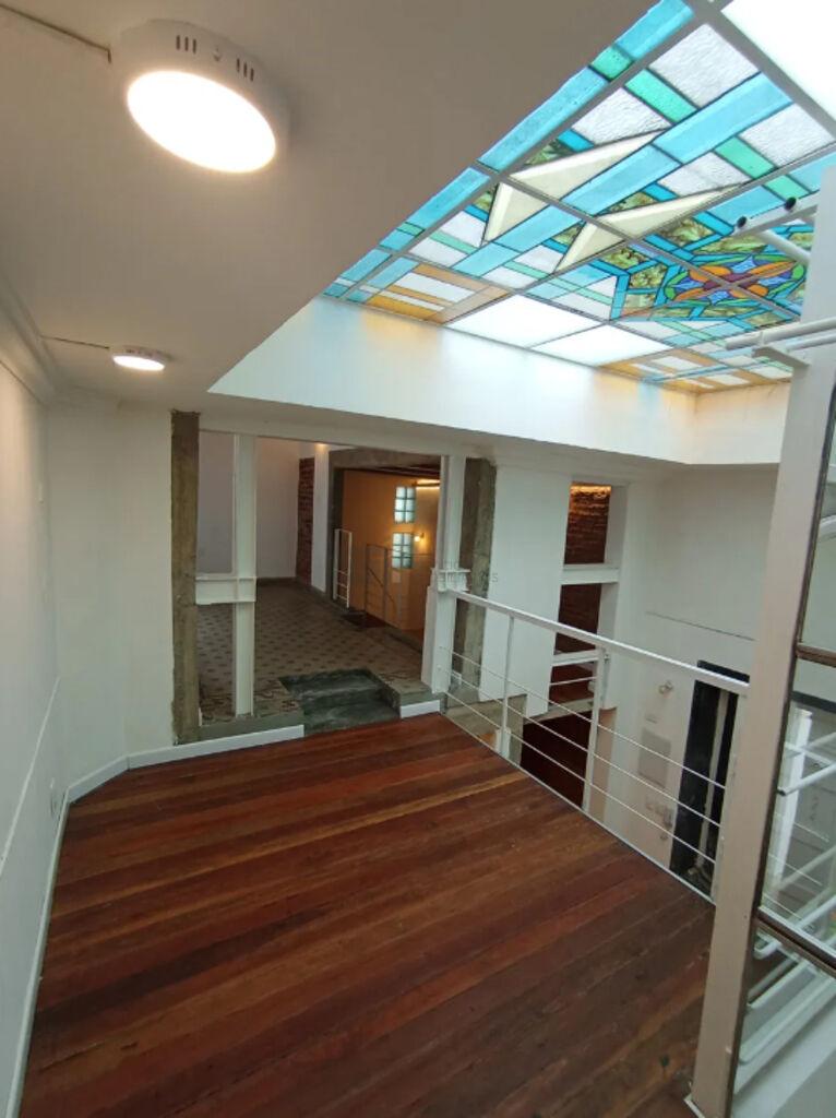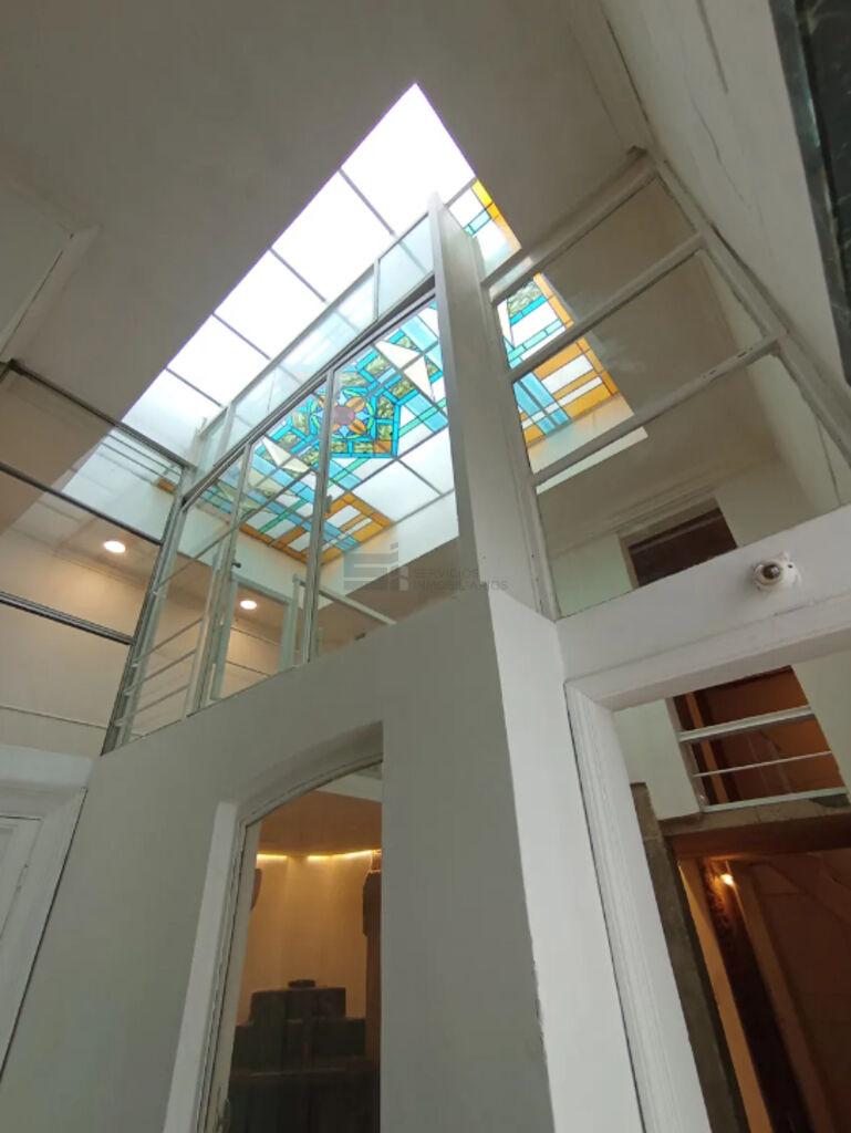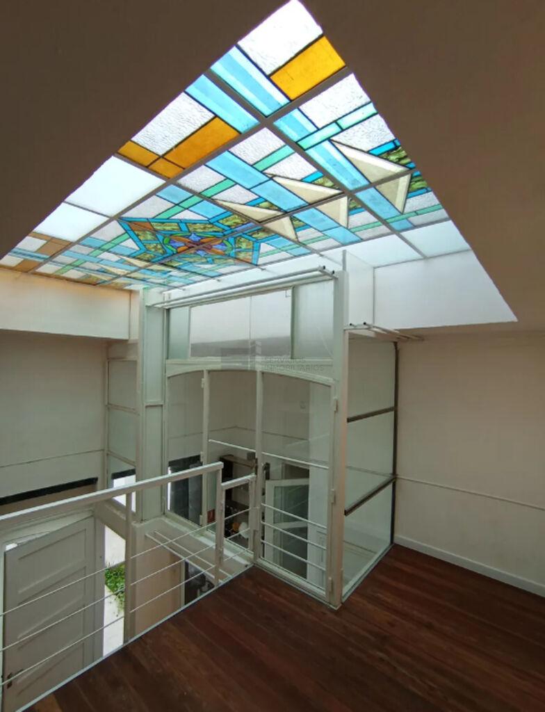 Entrada de luz por lucernario horizontal, vitraux restaurado, con iluminación incluida, 2 focos de 100 wats.