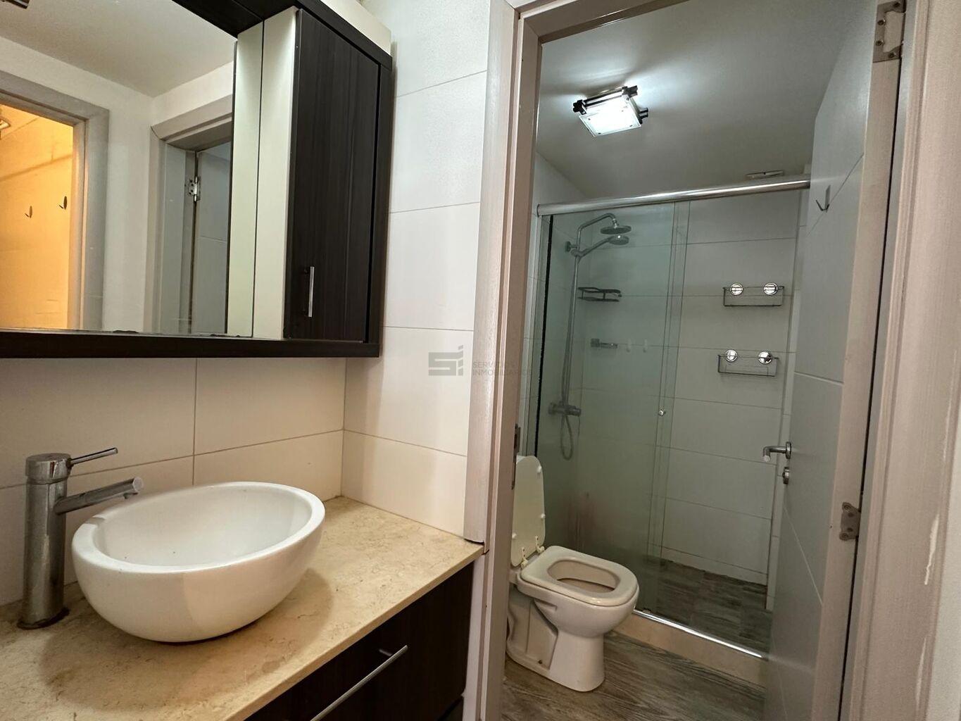 El baño es completo, actualizado, con mampara de vidrio.