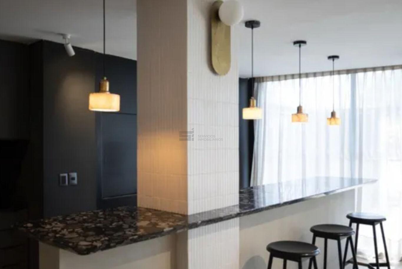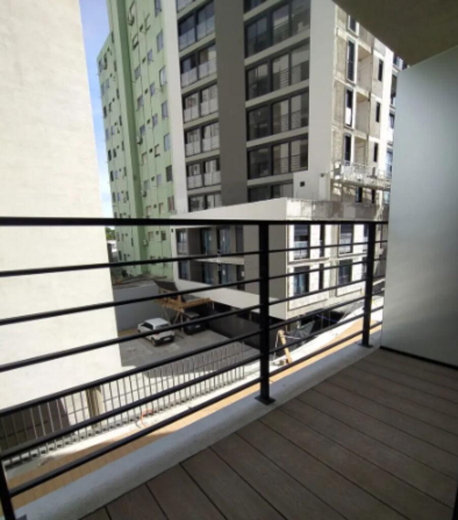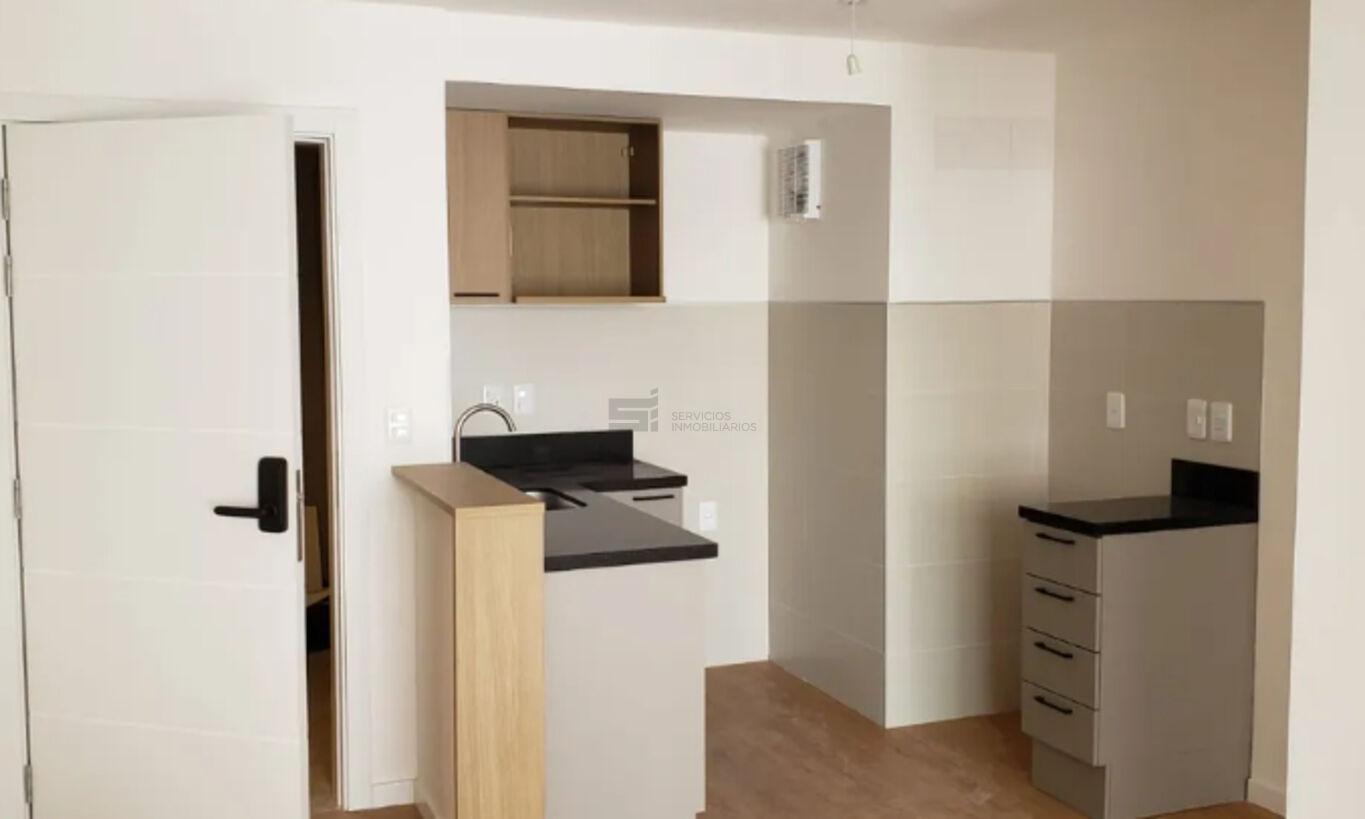 La unidad cuenta con un dormitorio amplio con aire acondicionado, living comedor con cocina integrada también climatizado, baño completo con mampara y balcón.
