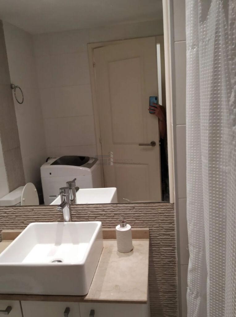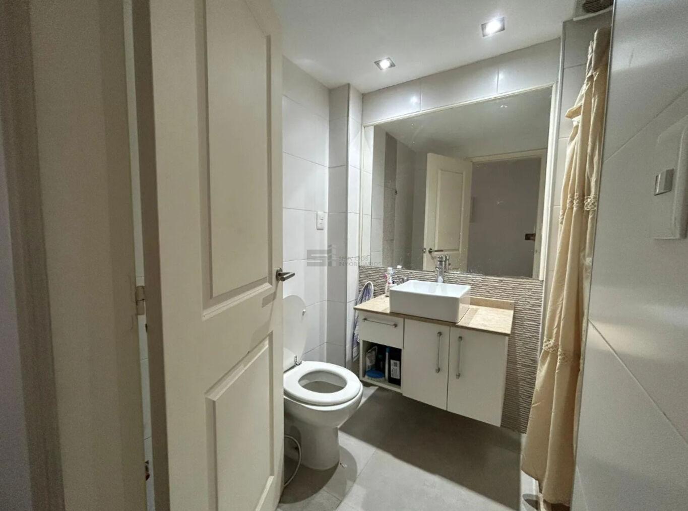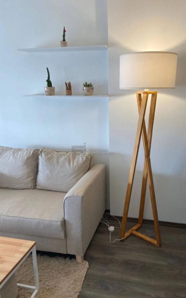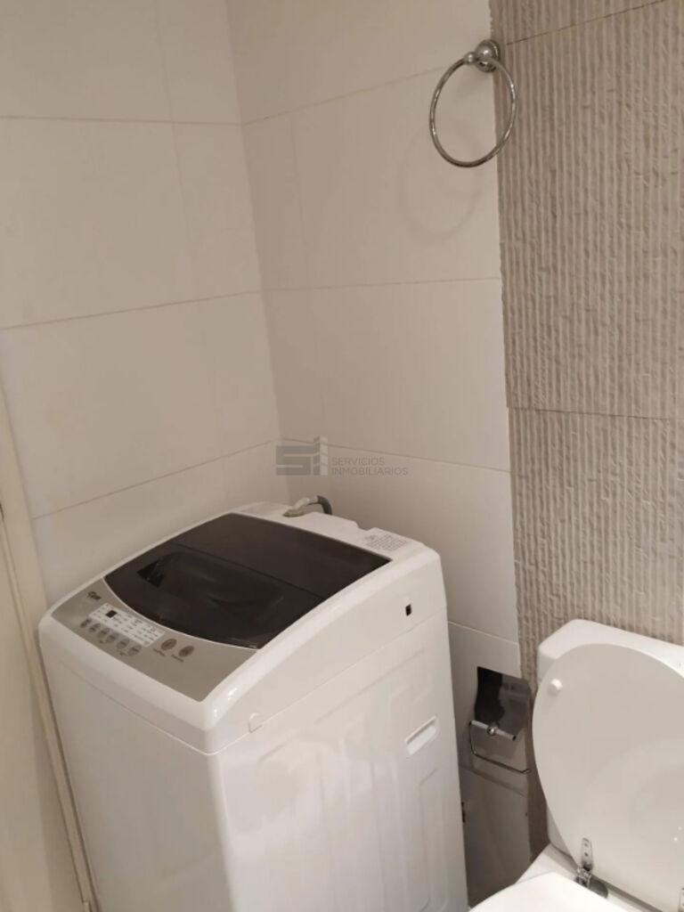 El apartamento incorpora un mueble funcional frente a la puerta de ingreso, destinado a la conexión de lavarropas y calefón, optimizando el uso del espacio.