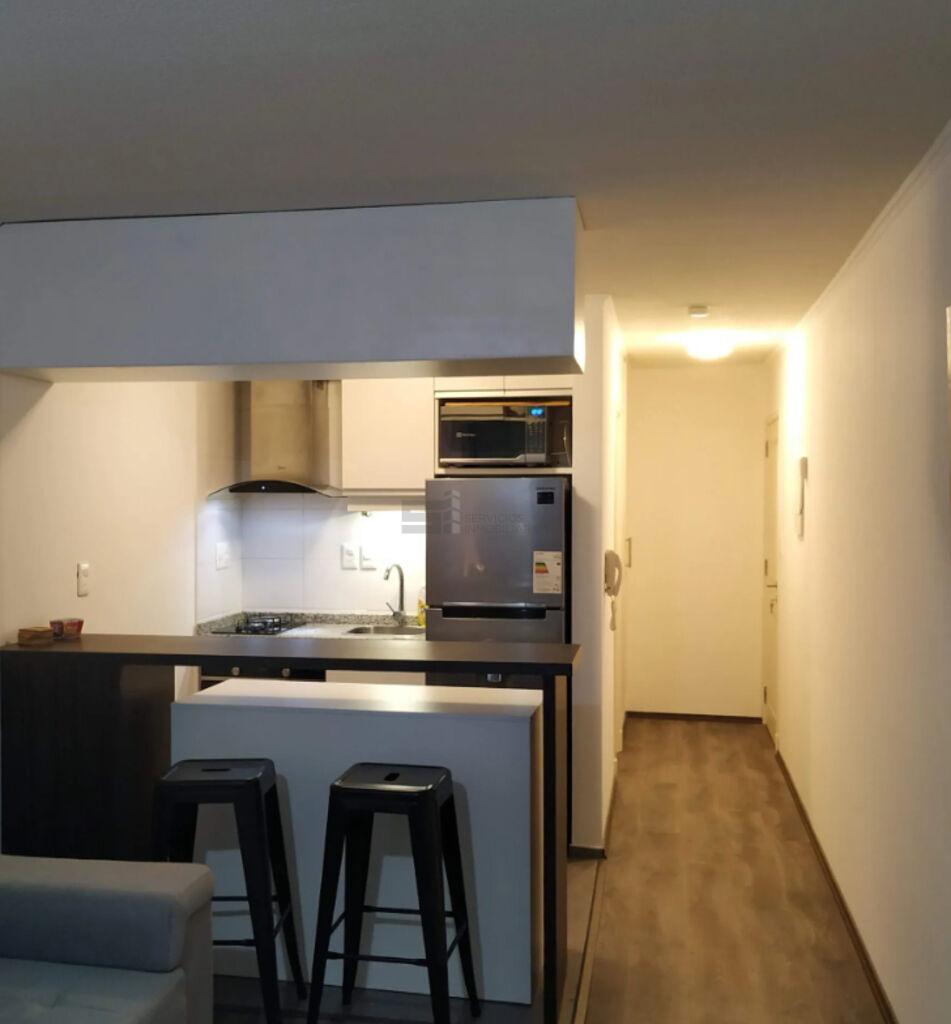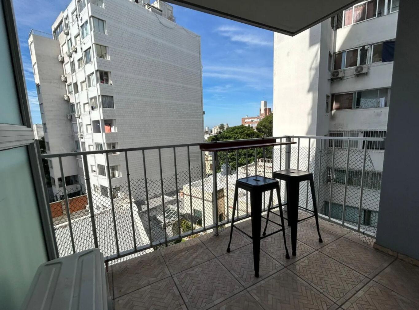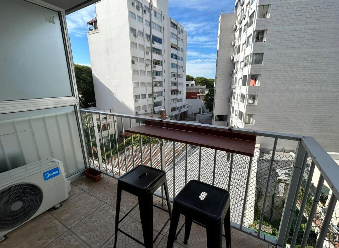 El apartamento incorpora un mueble funcional frente a la puerta de ingreso, destinado a la conexión de lavarropas y calefón, optimizando el uso del espacio.