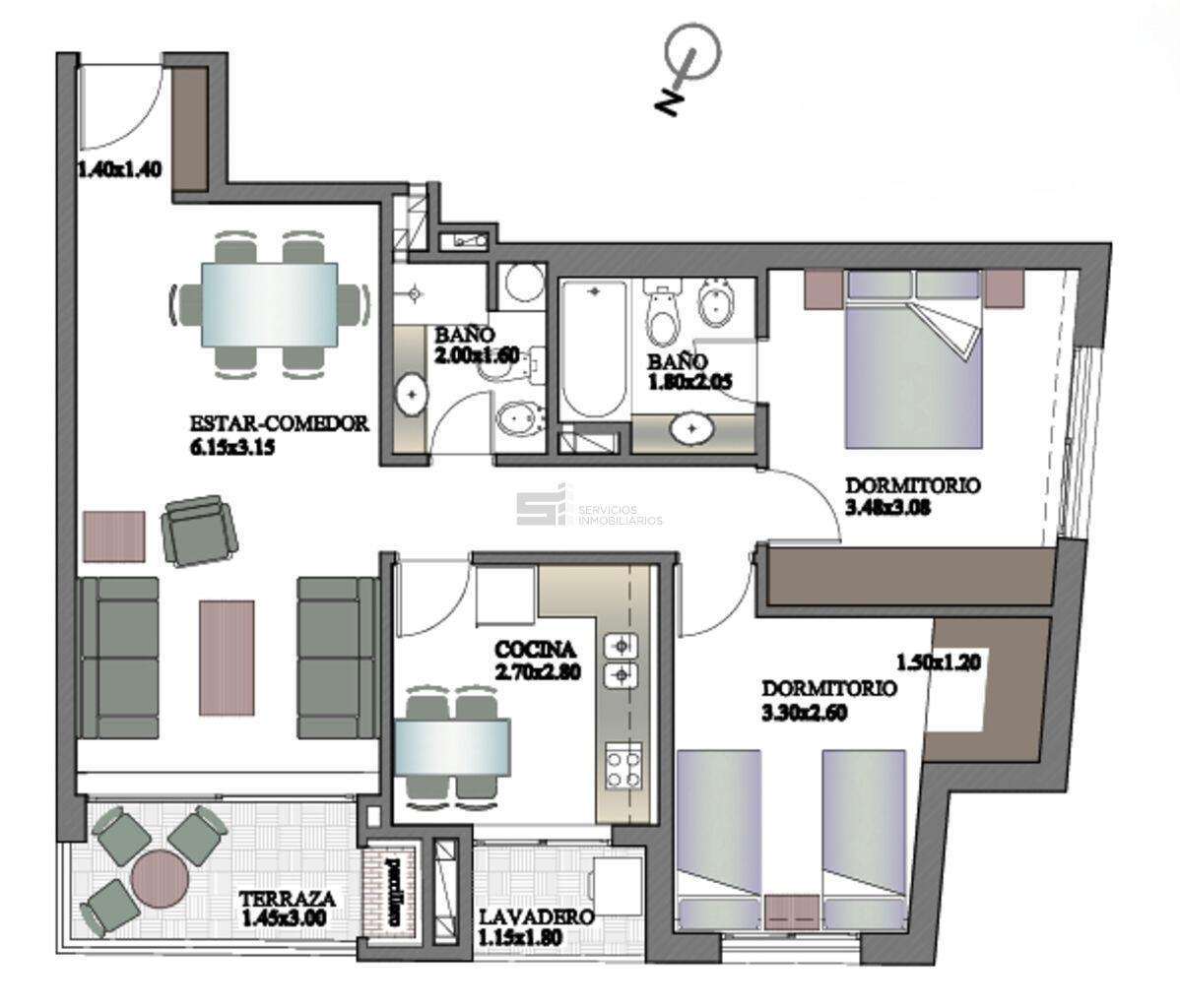 - 2 dormitorios