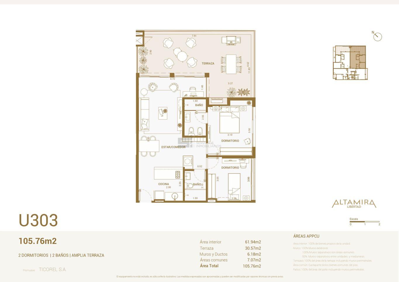 - 2 DORMS / desde Usd 269.985 / 68 m2 int + 12,3 m2 balcón (frente) UNIDAD 402