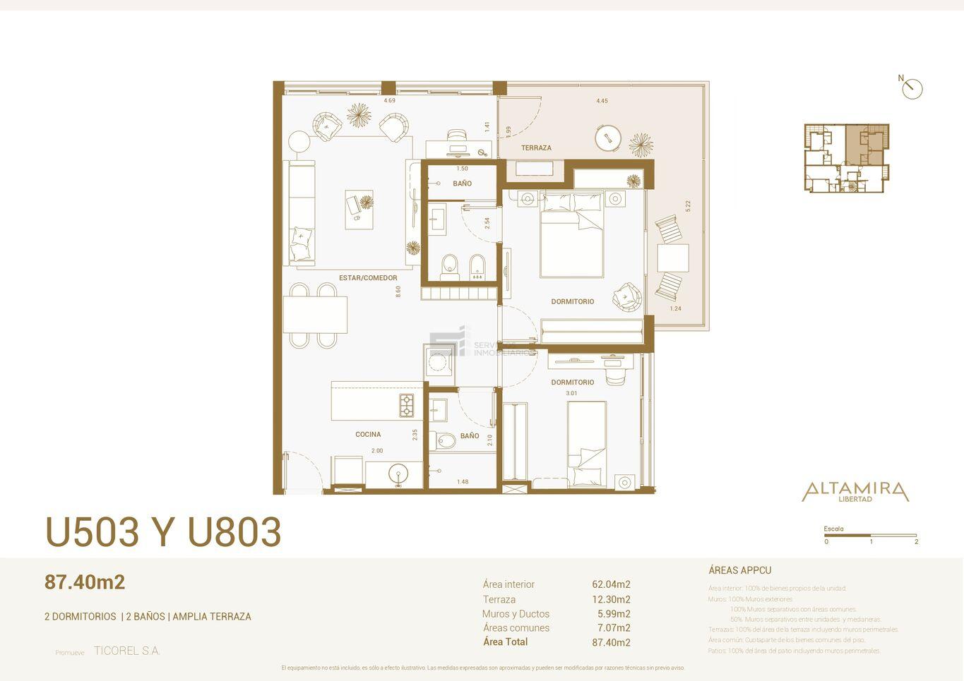 - 2 DORMS / desde Usd 271.144 / 68 m2 int + 12,3 m2 balcón (contrafrente) UNIDAD 503