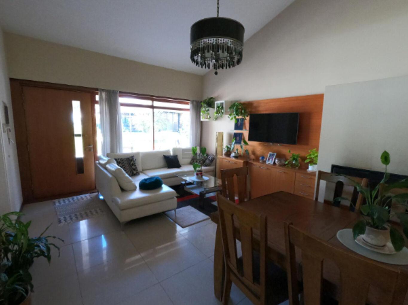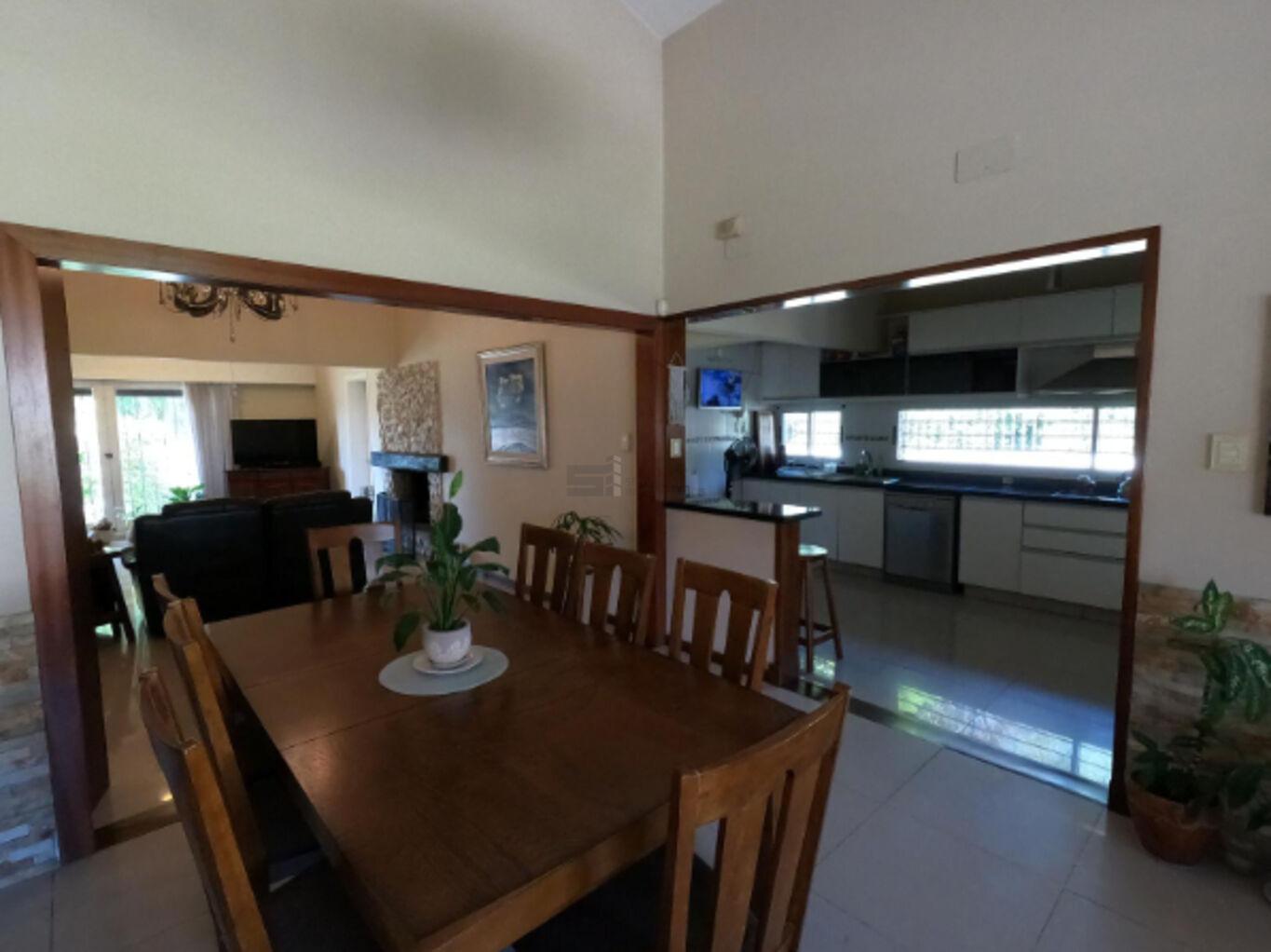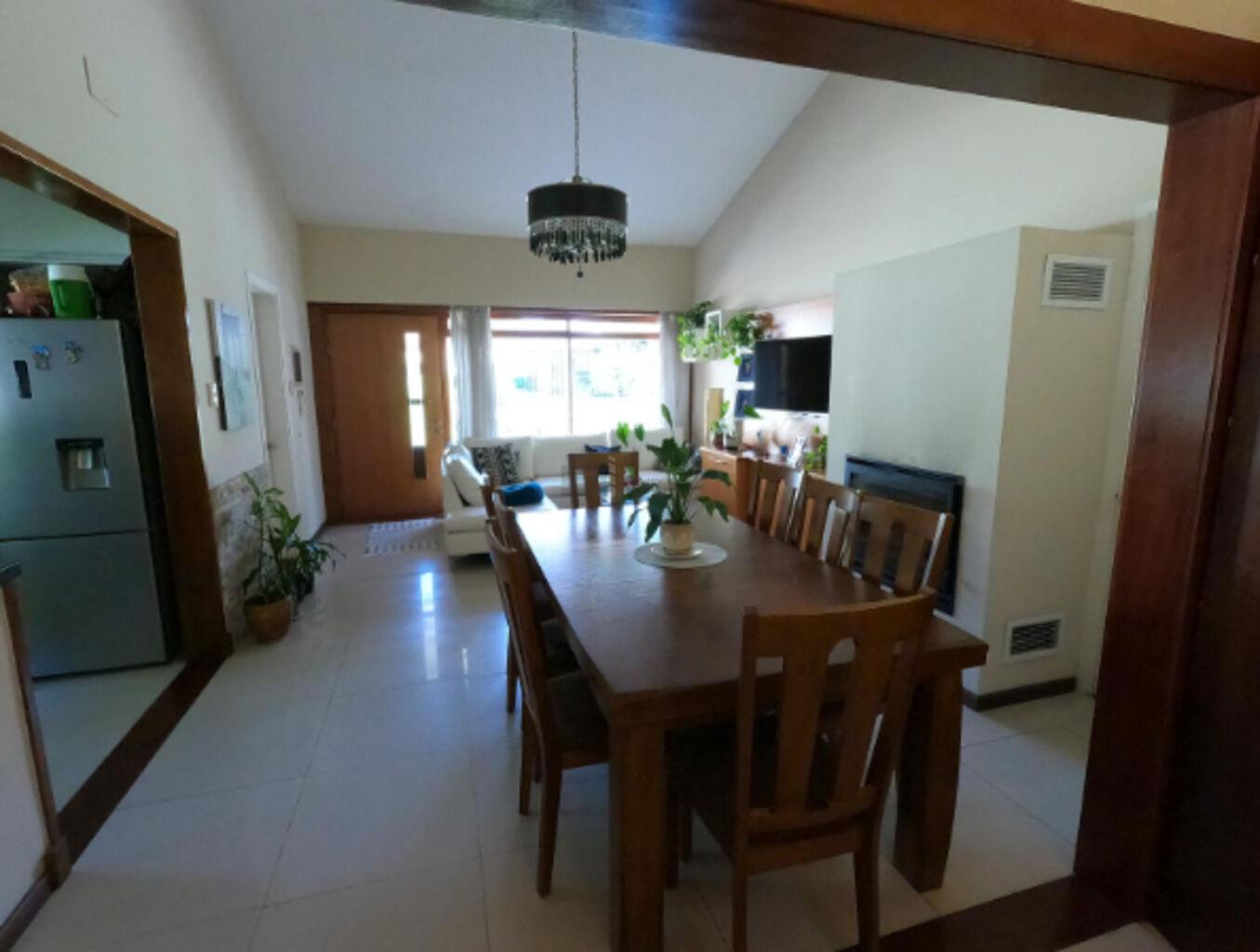 Al ingresar, se encuentra un espacioso living con estufa a leña, un comedor con estufa a leña de alto rendimiento y un cómodo estar. La moderna cocina integrada conecta con un toilette y dormitorio de servicio. La casa ofrece cuatro dormitorios y dos baños completos, destacando el dormitorio principal con vestidor y baño en suite.