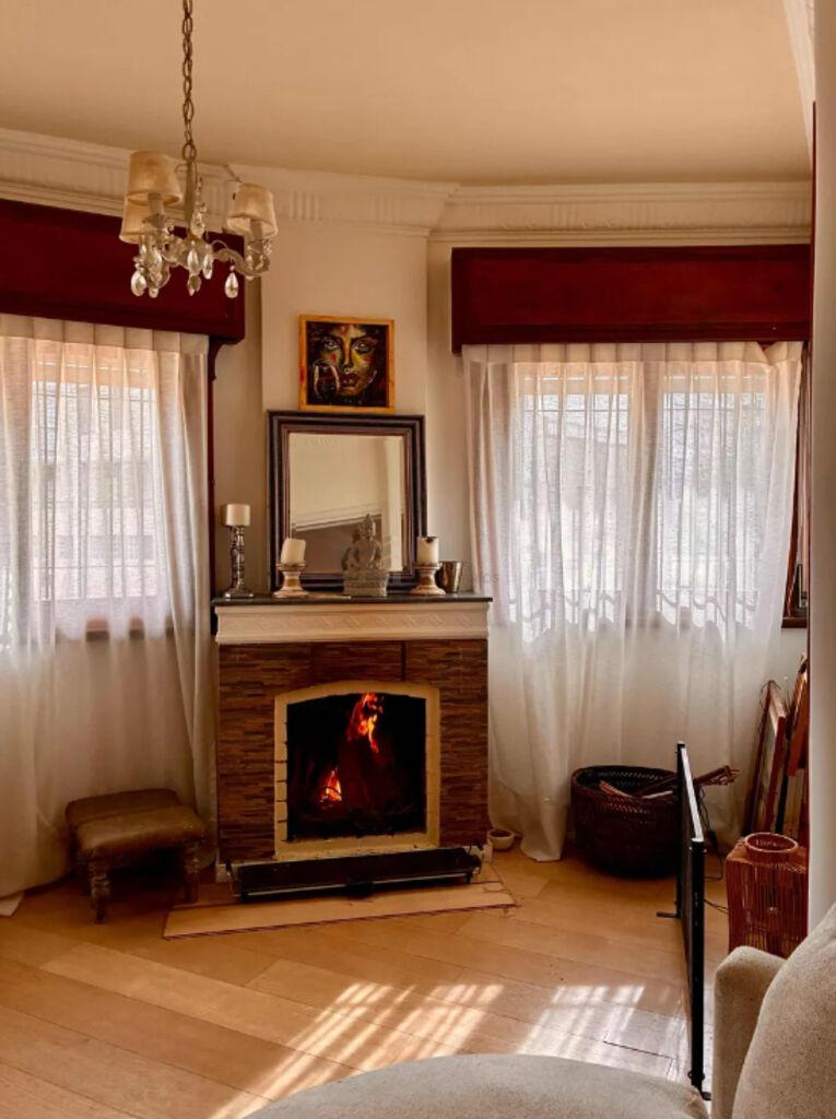 Patio con espacio para leña en plata baja