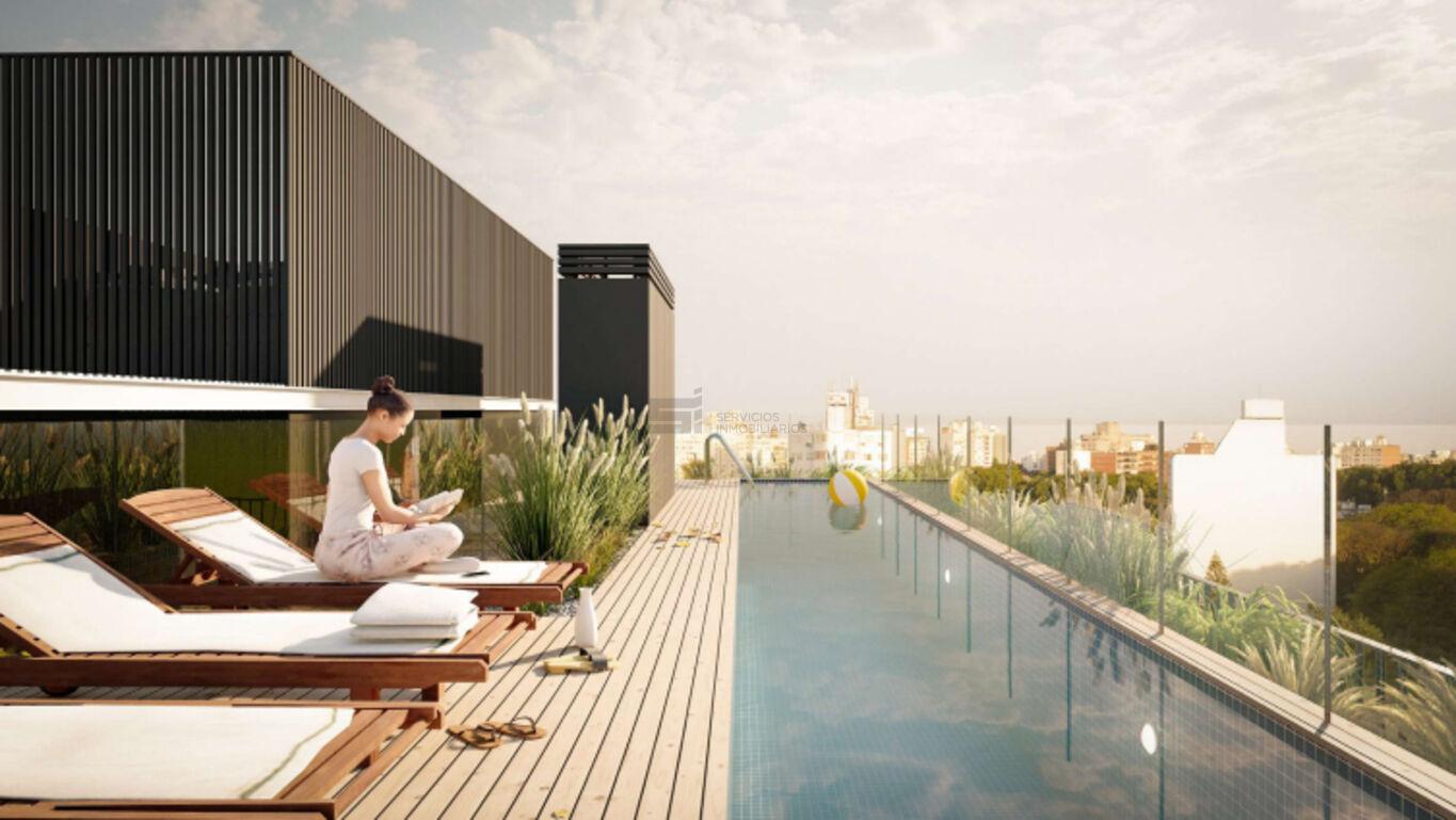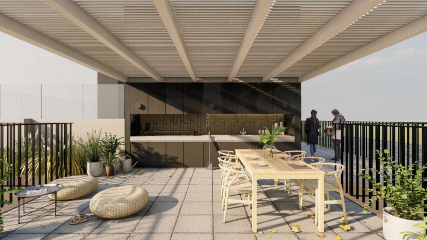Amenities: piscina y solárium con vista abierta, rooftop sectorizado, carga para vehículos eléctricos, packing room, wifi en áreas comunes, seguridad digital, bauleras, zona cowork, SUM con parrillero preparado para microcine, cooking area y yoga, laundry, guarda bicis, patio para ejercicios de calistenia y espacio para bañar mascotas.